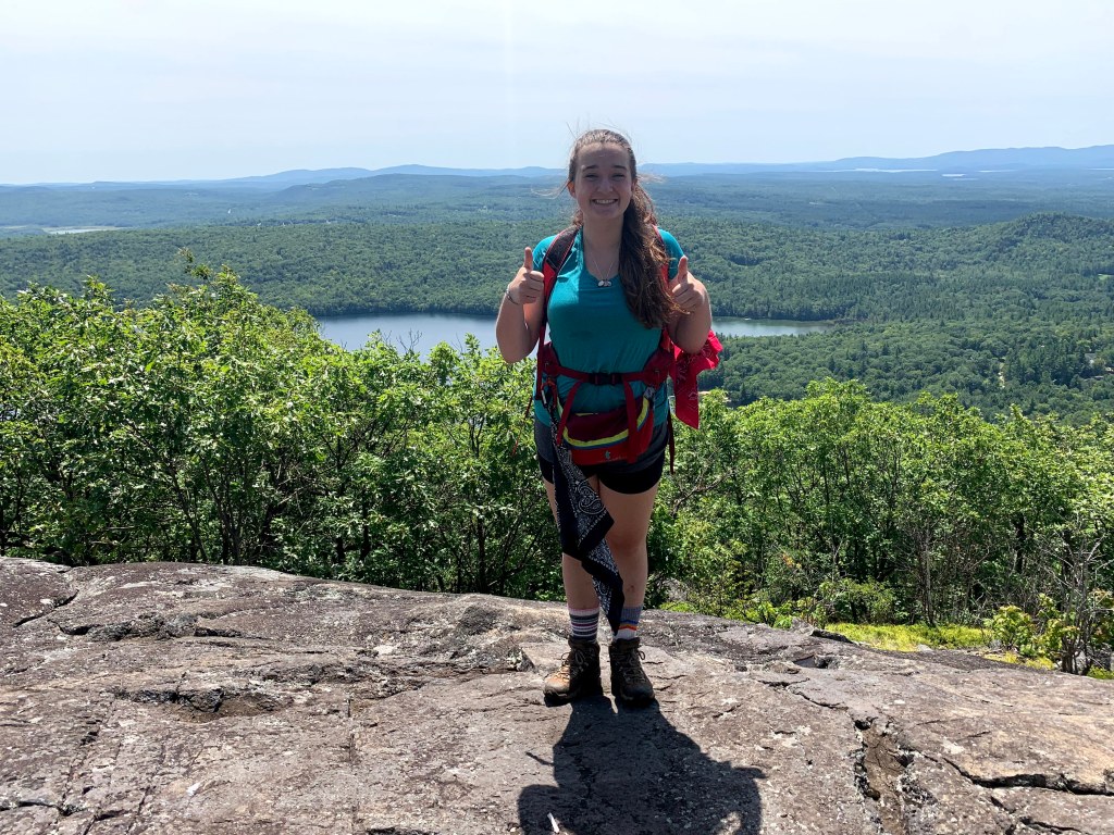 After about a mile and a half of hiking, you will get to what the camp calls “The Ledge”. Every year, cabins from camp hike up to the Ledge for an over night, and the view are just stunning. The Ledge is a great place to pause for a snack or lunch before continuing your hiking up the mountain. The trail is well marked, so it’s pretty difficult to get lost, but if you do, so go straight up and find the lean to, from there, you can continue your trek.